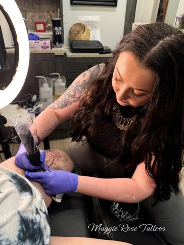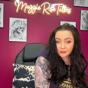 Margaret or Maggie, depending on who you're talking to. Artist, tattoo artist, owner of Maggie Rose Tattoos LLC. 25 years of age. I may be newer to tattooing, but I’m a lifelong artist. I was 5 years old when my dad began teaching me to draw, and art has been a crucial part of my life ever since. I live by the notion that “the ‘earth’ without ‘art’ is just ‘eh.’”(Demitri Martin)